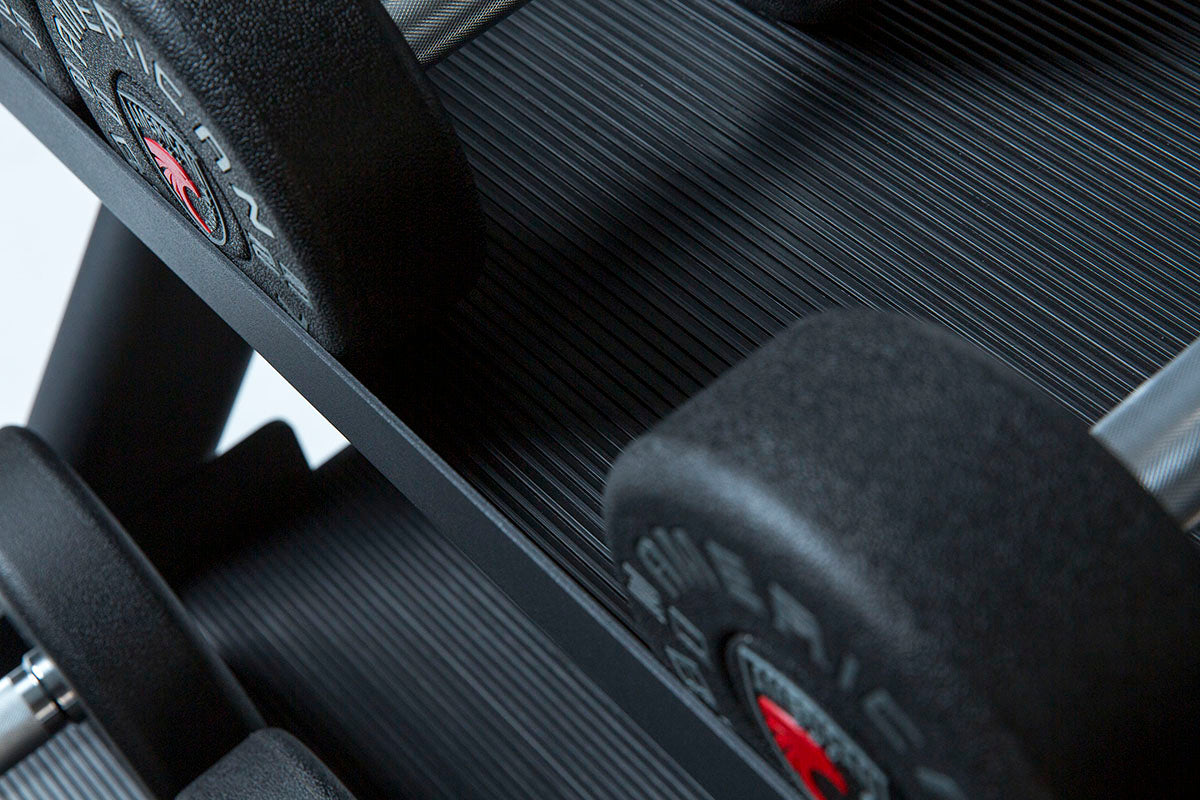 La estructura de acero de alta resistencia soporta incluso las mancuernas más pesadas. Cada nivel del rack está revestido con una capa de goma, que protege las mancuernas y las mantiene en perfecto estado.