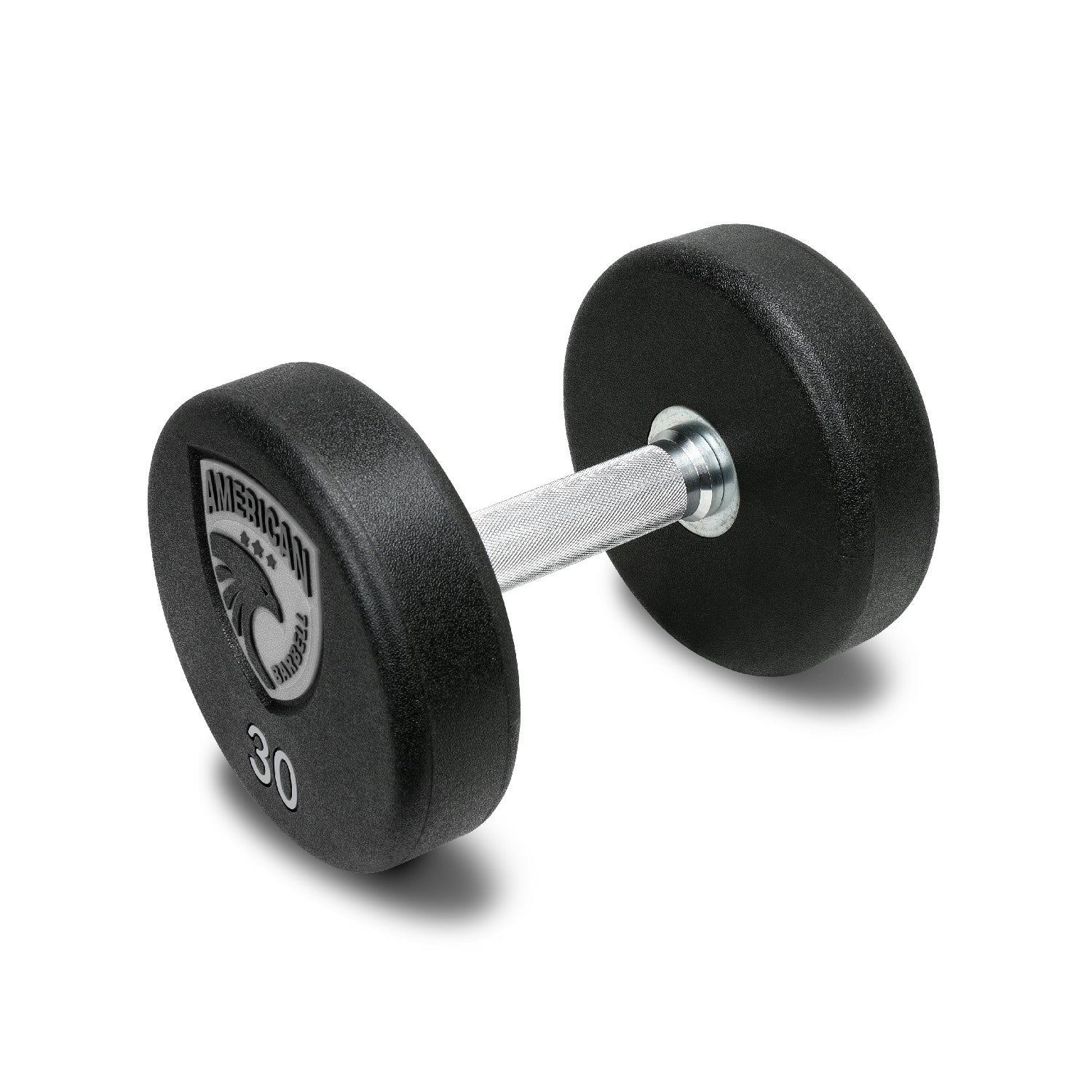 Inscripción: American Barbell en el interior de la cabeza de la mancuerna
