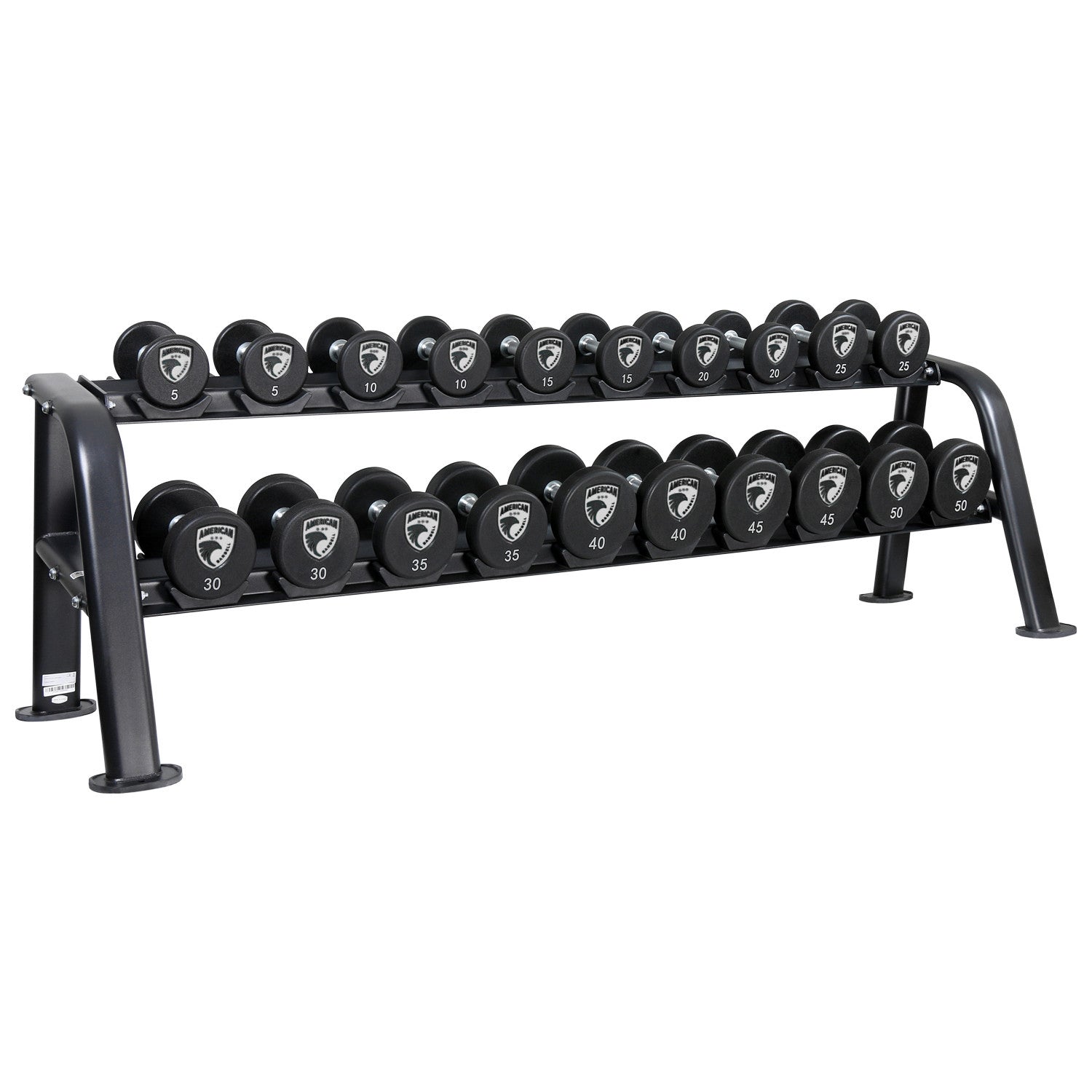 Presentamos nuestra nueva mancuerna Serie 4 de grado comercial, diseñada para durabilidad y economía. Cuenta con un núcleo sólido de acero, un mango de cromo duro de fuerza media, una cabeza de uretano texturizado en negro con números grises fáciles de leer, y un mayor radio en los bordes internos y externos, proporcionando un diseño cómodo y ergonómico.
