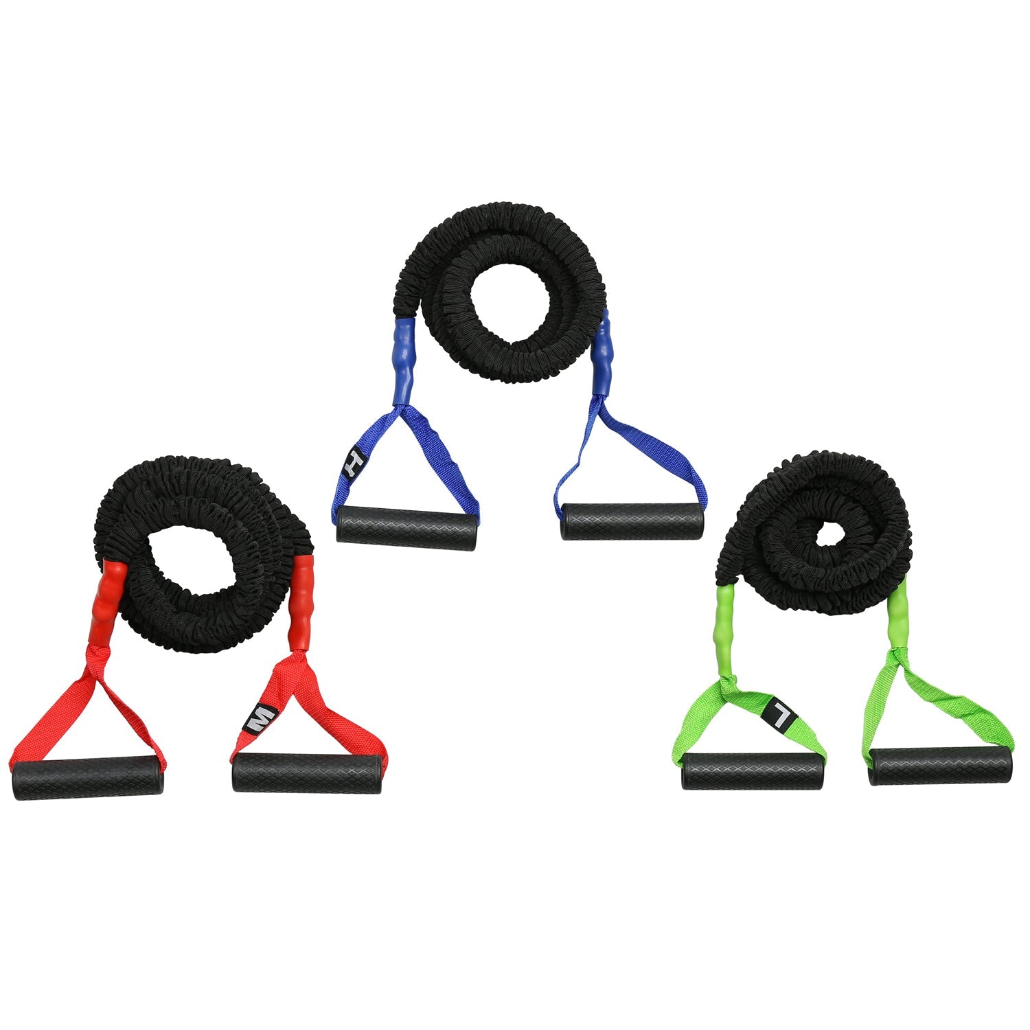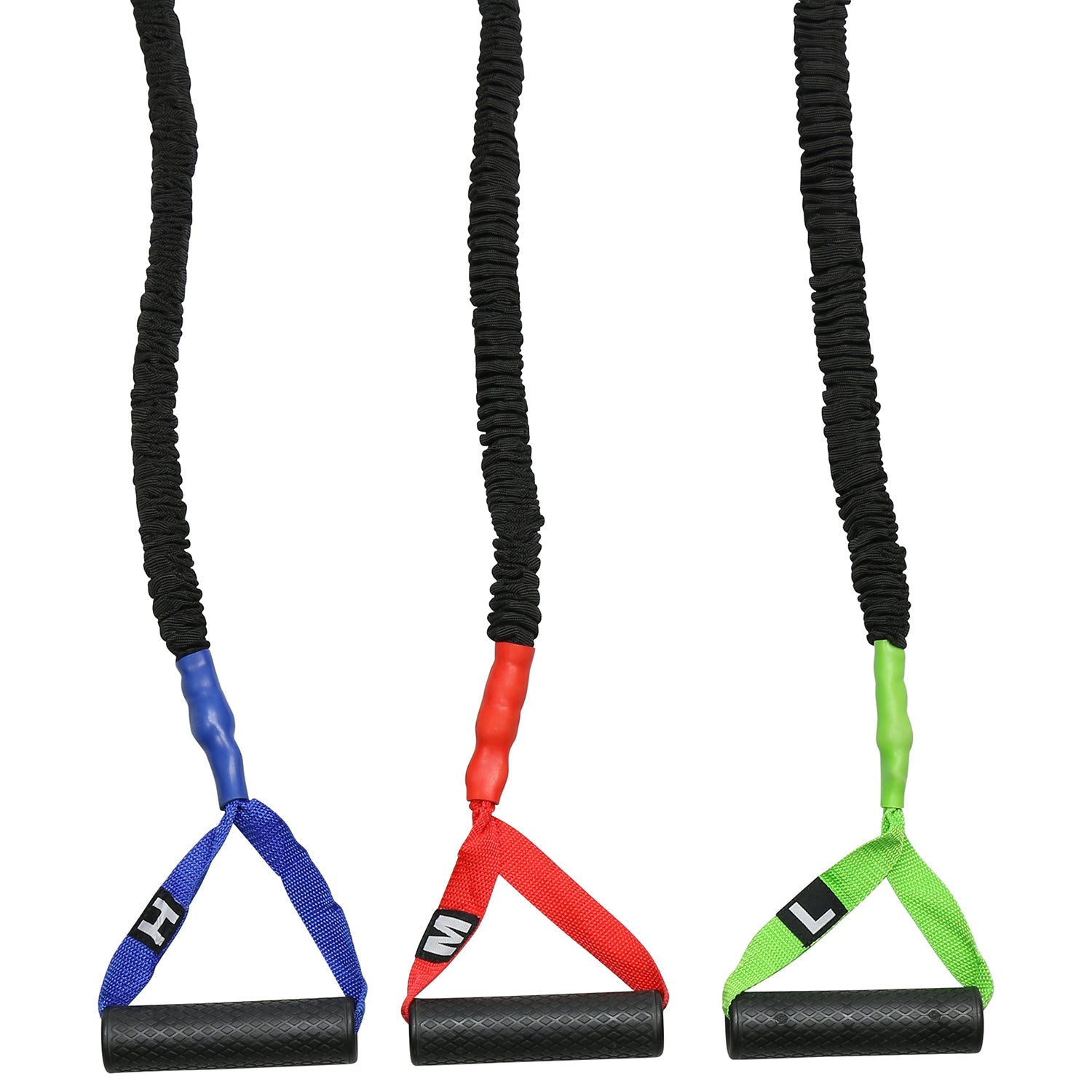 SE VENDEN POR SEPARADO: La serie de bandas de resistencia American Barbell está disponible en resistencia ligera, media y pesada. Las bandas cuentan con una cobertura protectora negra que las hace más seguras y duraderas. Los mangos ergonómicos proporcionan un agarre cómodo y seguro. Estas bandas son extremadamente resistentes, hechas con elástico quirúrgico reflexivo, ofreciendo una resistencia realista comparable al entrenamiento con pesas libres.