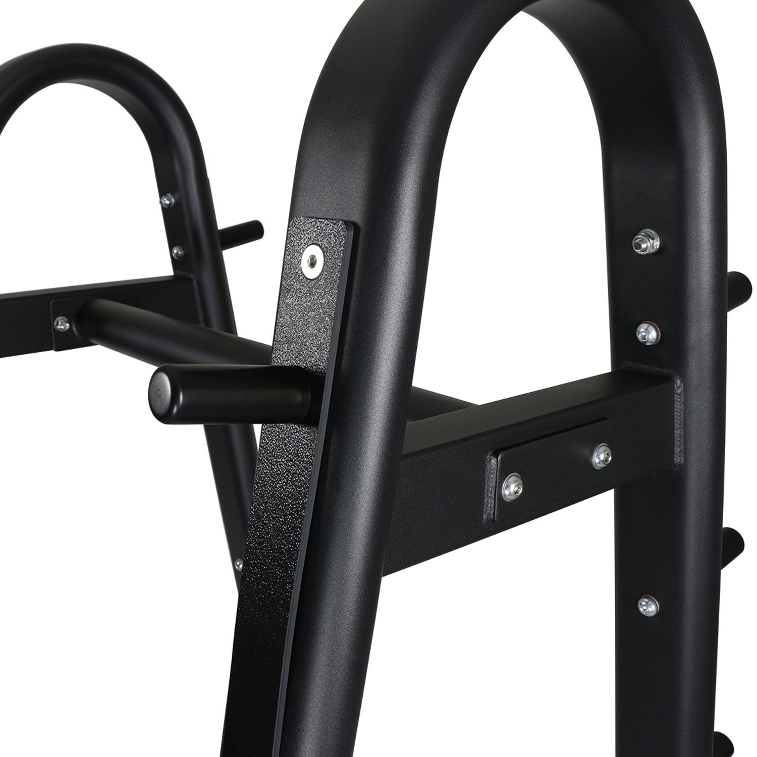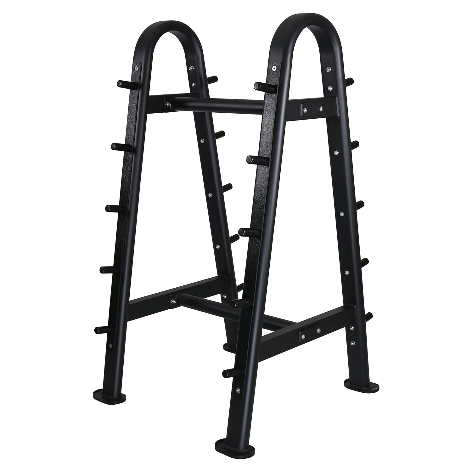 El rack permite colocar tanto barras rectas como EZ curl de peso fijo. El espaciamiento generoso entre los postes facilita agregar o quitar los discos de peso. Este rack permite almacenar de manera ordenada y conveniente tus barras de peso fijo, asegurando un fácil acceso para los usuarios. Su diseño limpio y funcional complementa cualquier entorno de entrenamiento, manteniendo tu gimnasio libre de desorden.